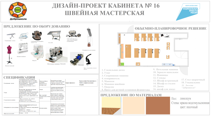 - обновление оборудования/оснащение мастерских для реализации предметной области «Технология»;