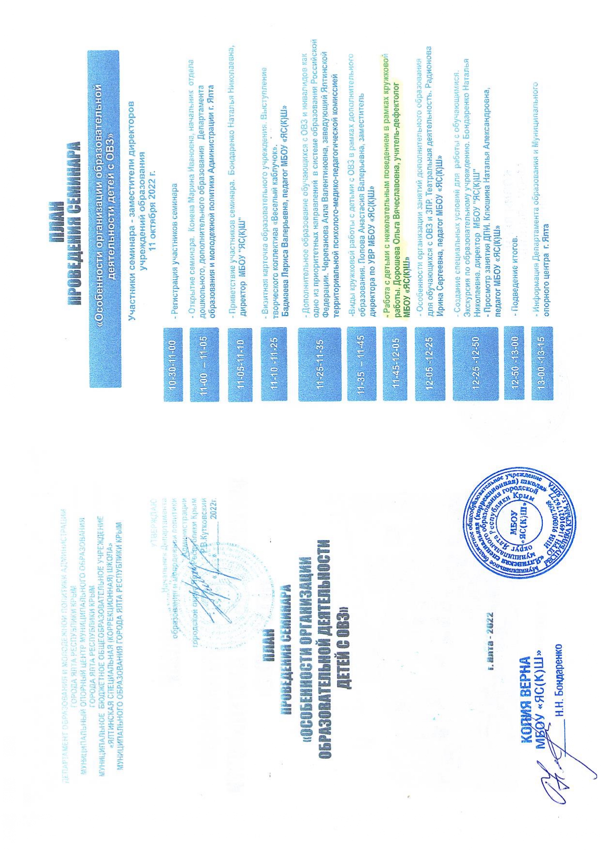 11.10.2022 г. выступление на семинаре «Особенности организации образовательной деятельности детей с ОВЗ» на тему «Работа с детьми с нежелательным поведением в рамках кружковой работы»