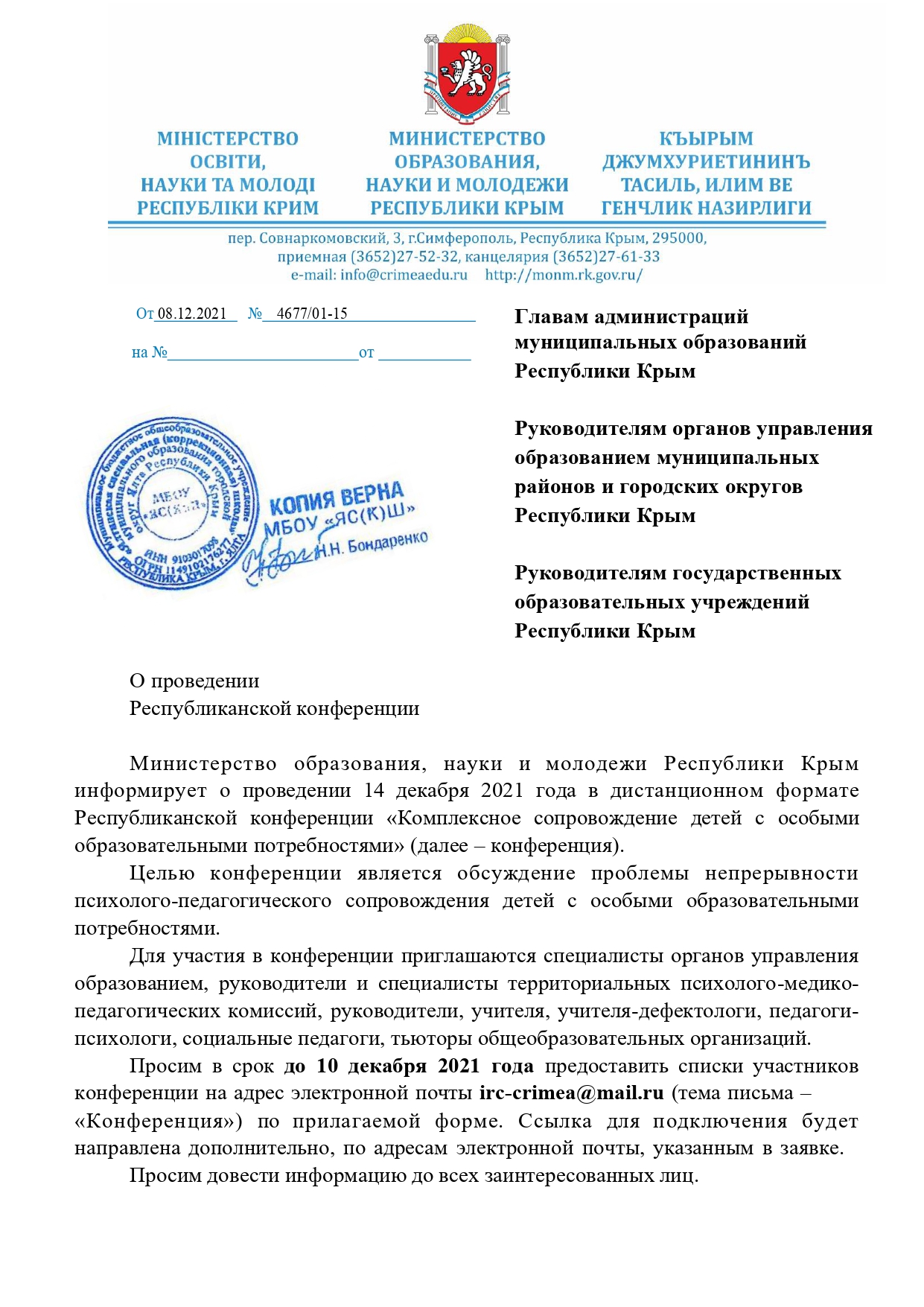 Муниципальное бюджетное общеобразовательное учреждение «Ялтинская специальная (коррекционная) школа» муниципального округа город-курорт Ялта Республики Крым